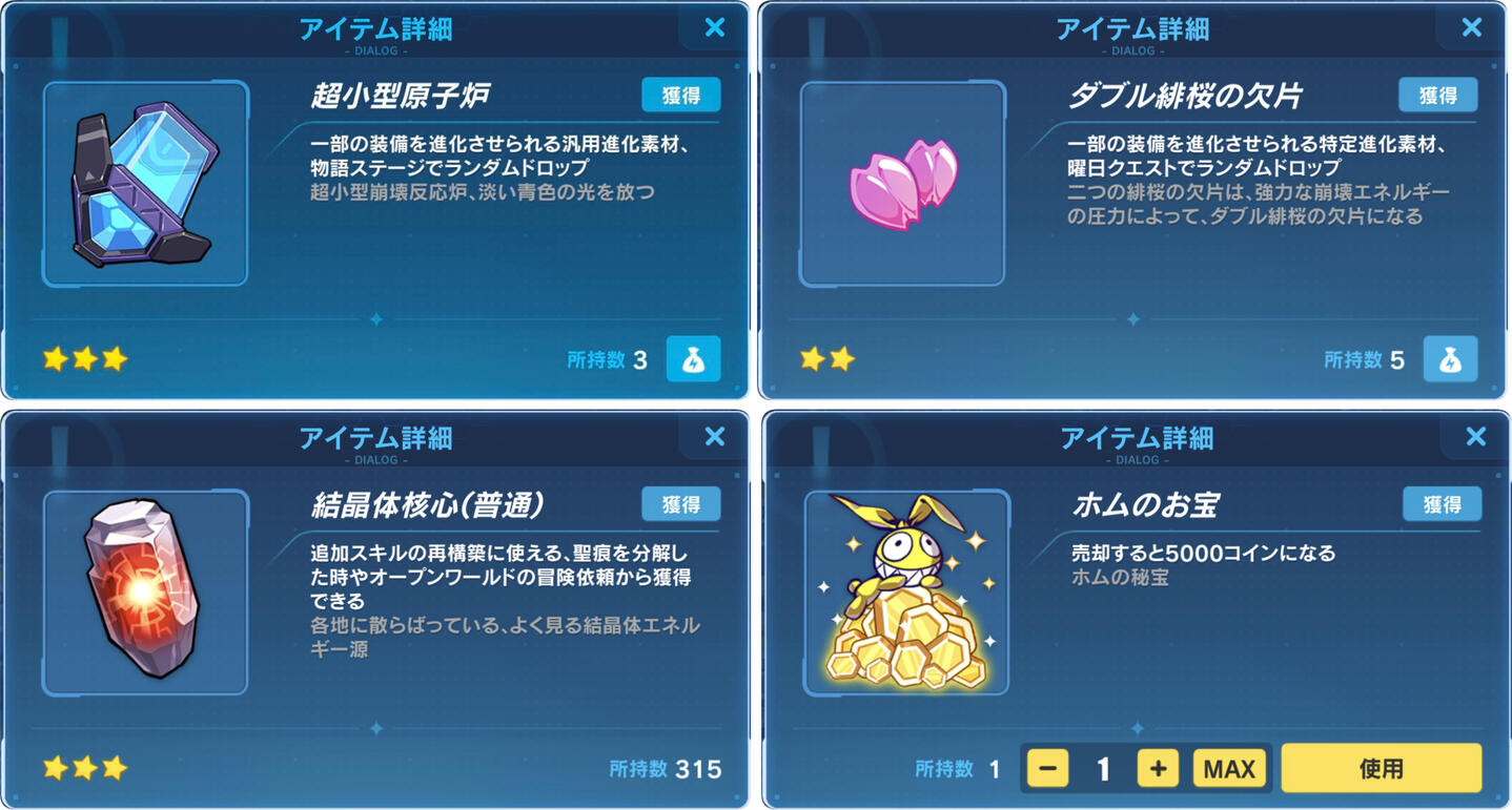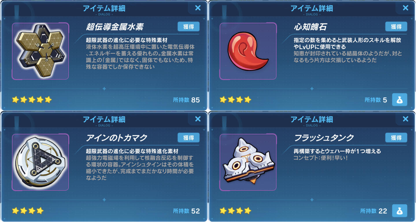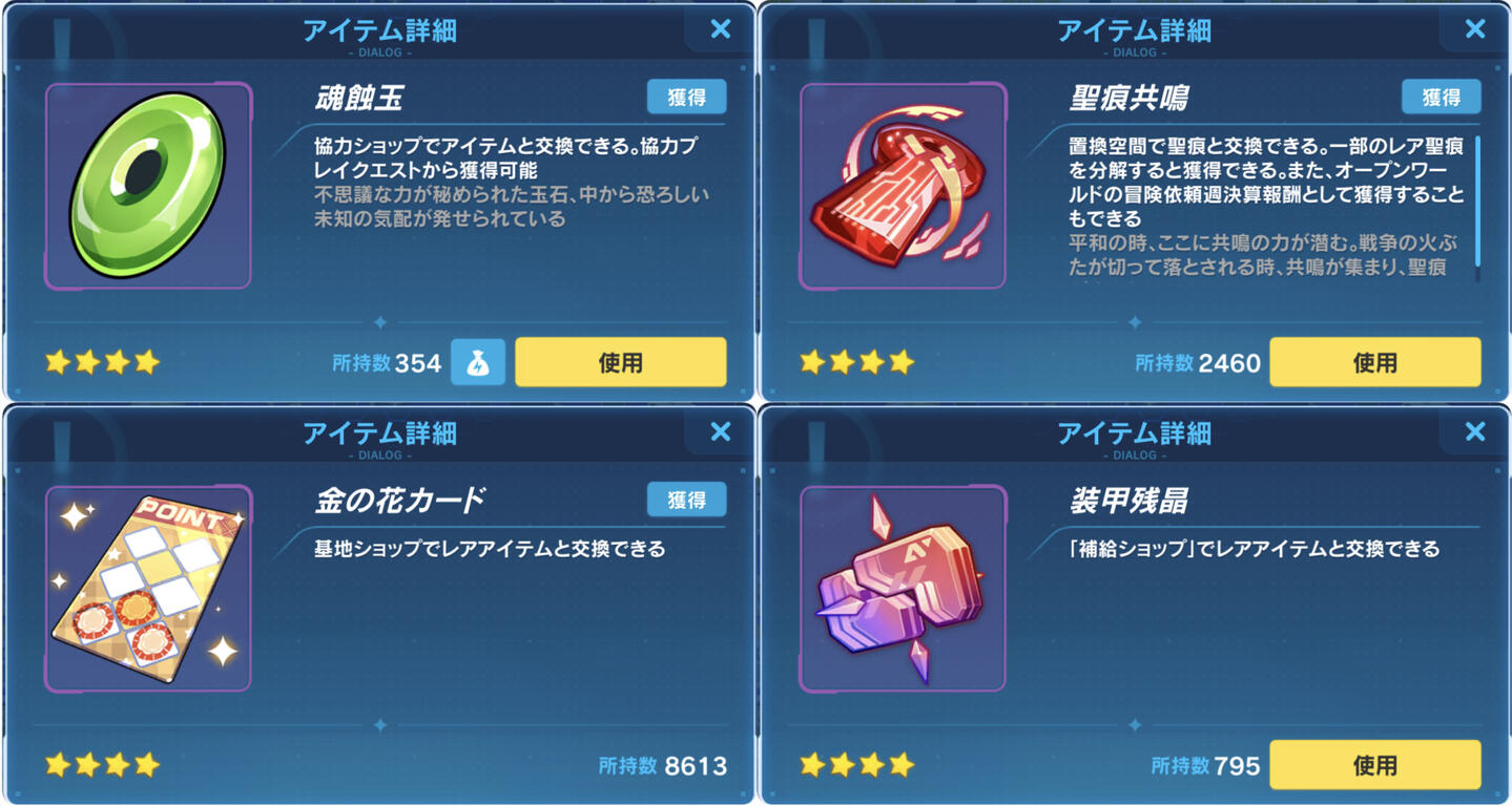 全然足りないし入手方法も限られているので、素材ボックスに入っていたら最優先で交換したいが序盤は一切使わないので超伝導金属水素と同じく一旦温存しておこう心知魄石