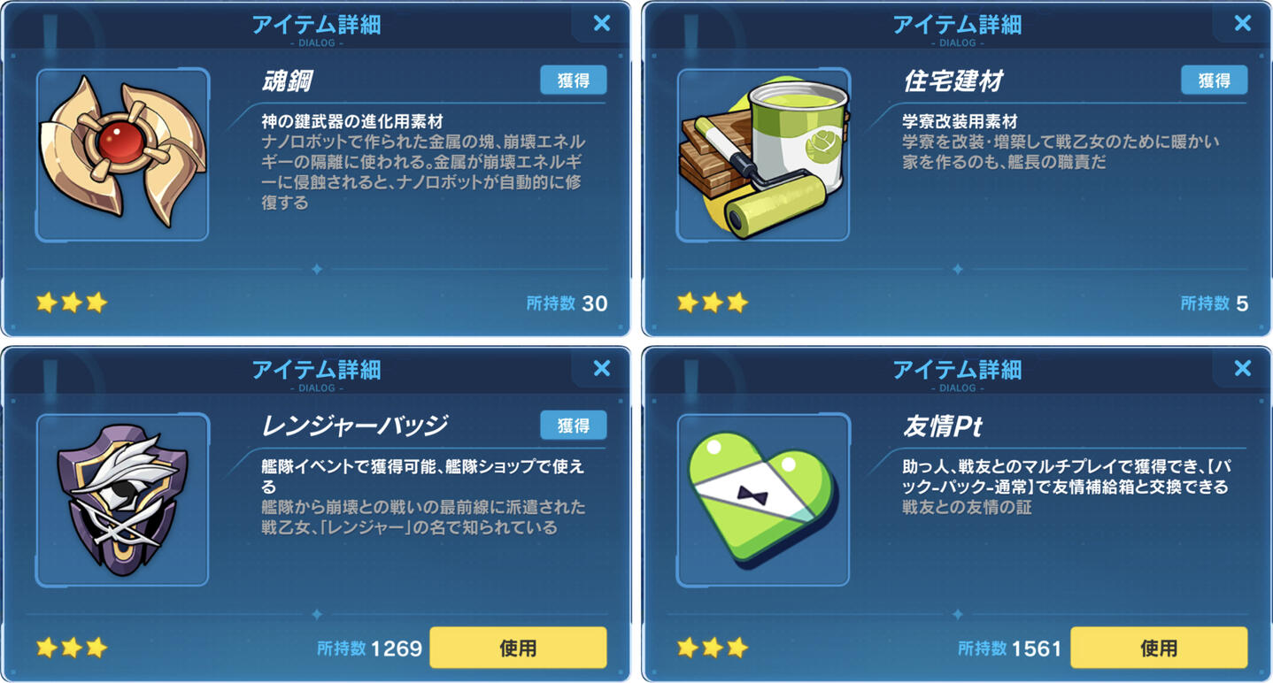 友情補給箱と交換でき、素材が手に入る