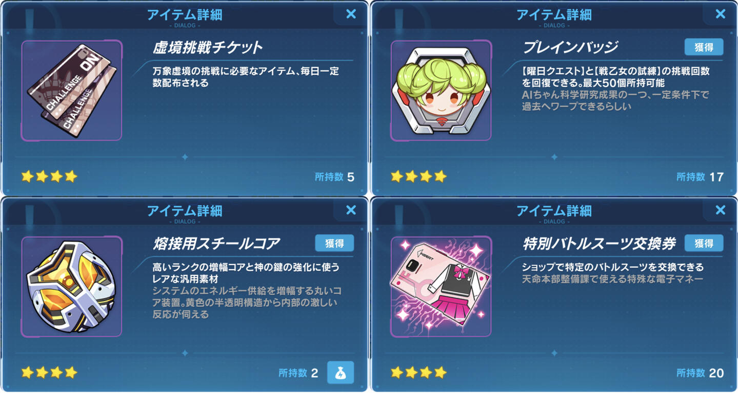 要求される量がとんでもなく多いので、毎日コツコツ万象虚境(出撃>挑戦>万象虚境)をやろう